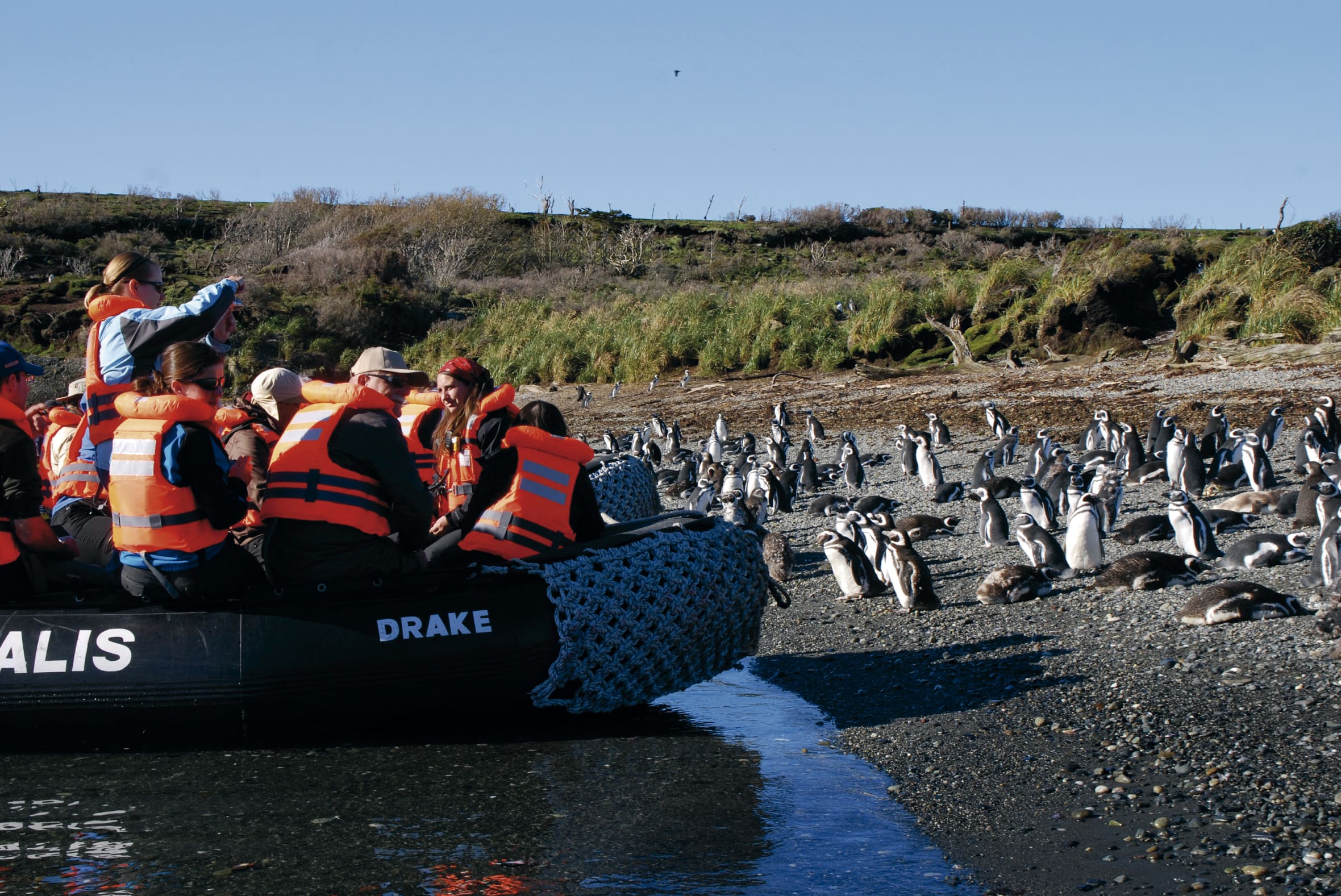 Today, we’ll arrive in Ainsworth Bay, near the Marinelli Glacier, and set out on a guided hike through the lush Magellanic forest, where you’ll learn how life returns after glacial retreat. Later, enjoy a Zodiac excursion to the Tuckers Islets for a close-up view of Magellanic penguins and cormorants. In September and April, this visit is replaced by a scenic glacier walk in nearby Brookes Bay due to the migratory cycle of the penguins.